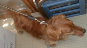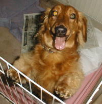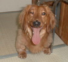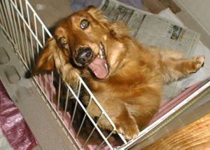 お散歩の後で、サークルの中を掃除でいている間、待っています。「早く、ゴハンが欲しいよ〜」って言ってるのでしょう。